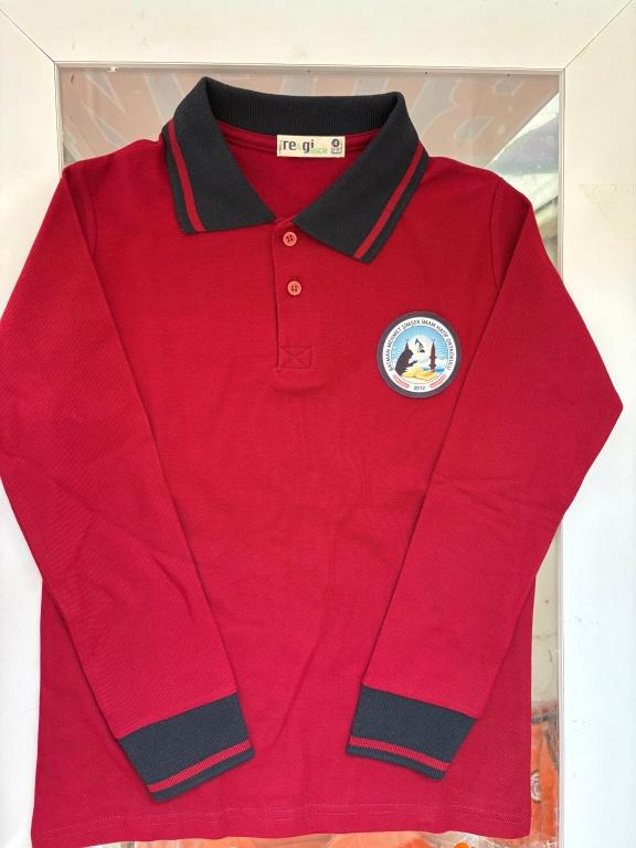 Ortaokul forma: kırmızı lakos kısalıkla ve ya uzun kollu yakalı tsört alta siyah pantolon